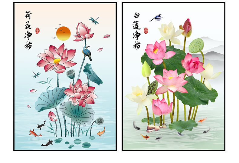 Color: Lotus purifies, New year of the lotus, The water and fire joins, White lotus cleansing, Harmony and wealth, Aquatic wealth, Recitation lotus, Pink lotus, Lotus removal, Lotus cleansing 1/2/3, Lotus nine fish, Wealth and ruyi, More than enough years of lotus, Japanese lotus, Orchid fragrance, Blue and white porcelain, Blue peacock magnolia, Elk, Peacock peony, Plum vase
