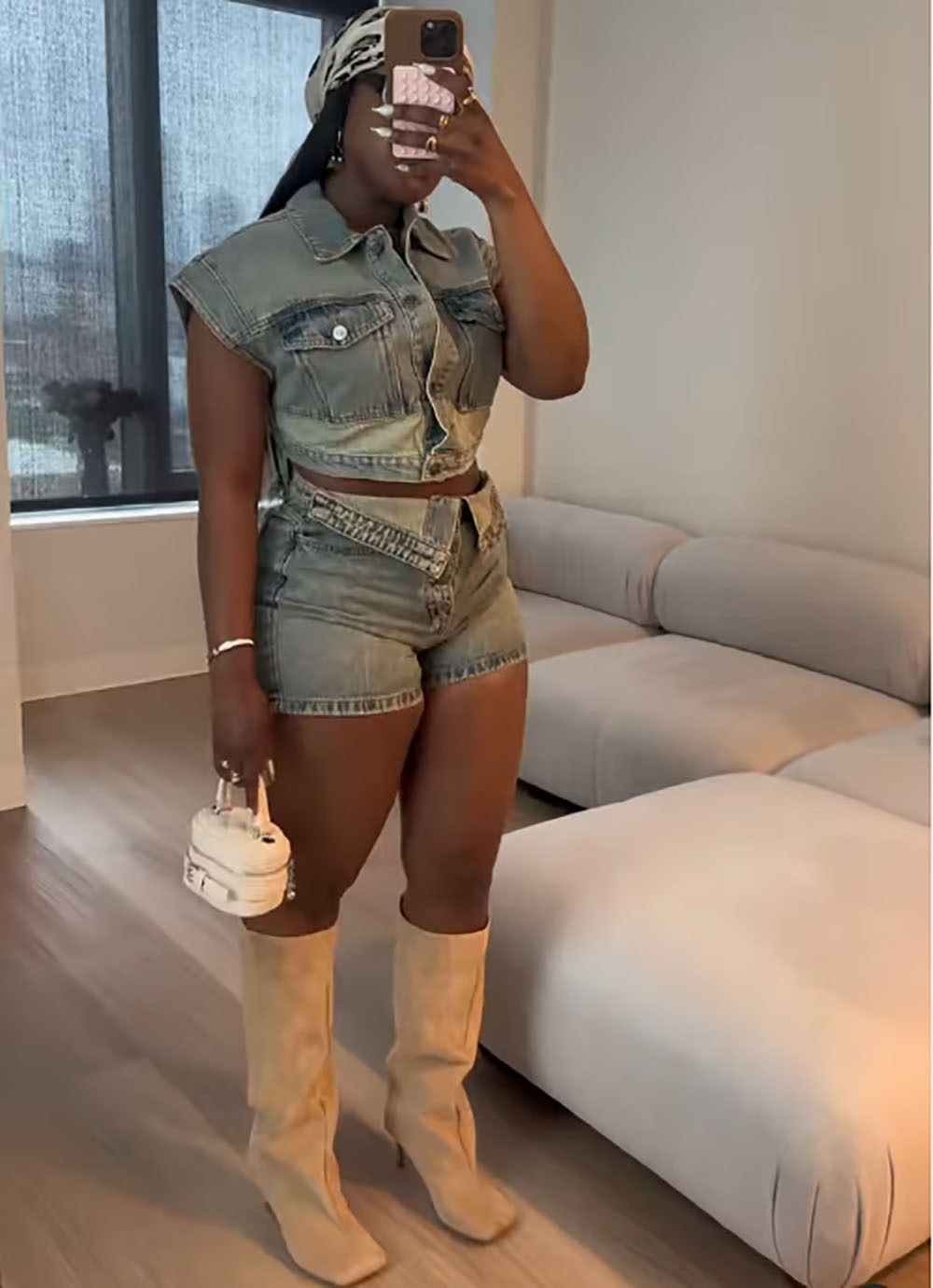 Comfortable Fit: High-waist shorts and stretch denim provide a comfortable and flattering fit.